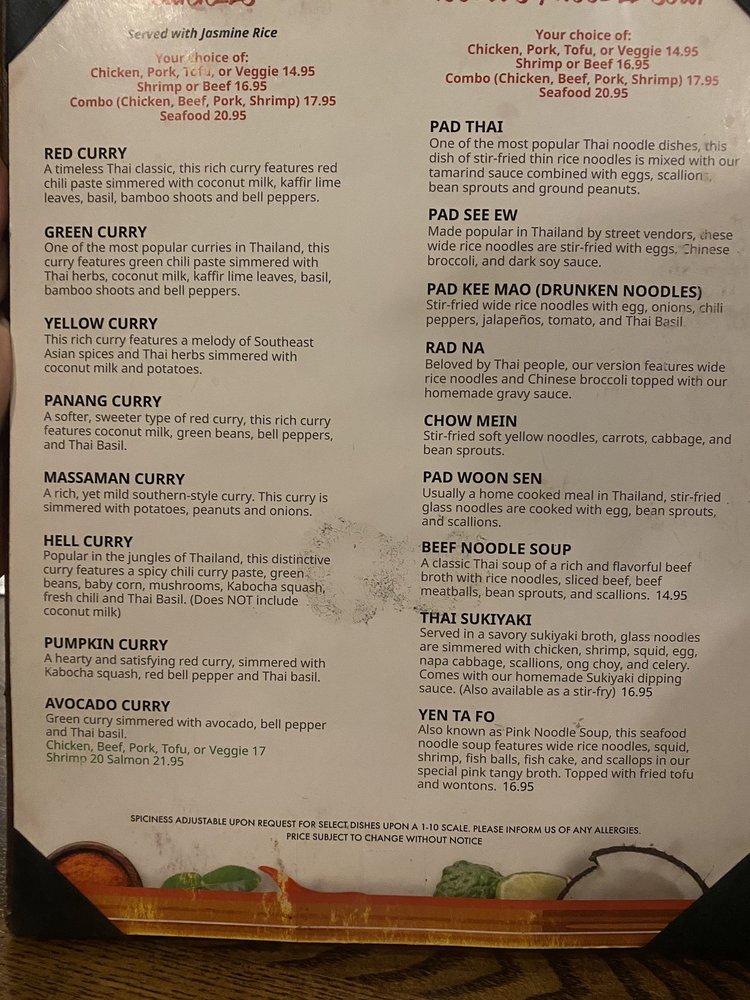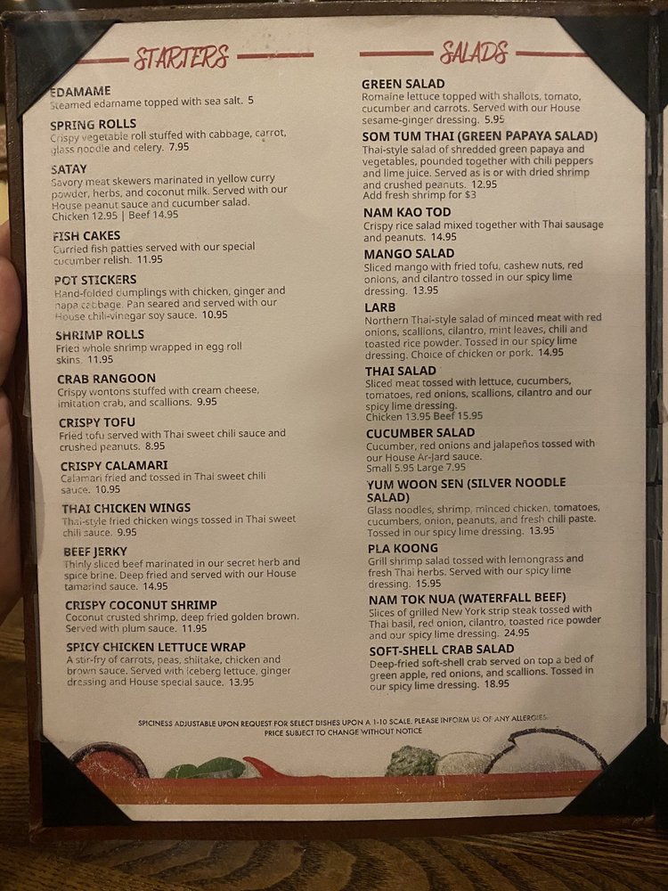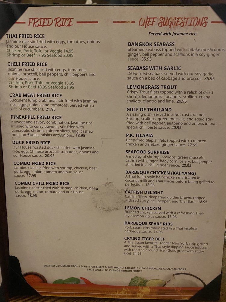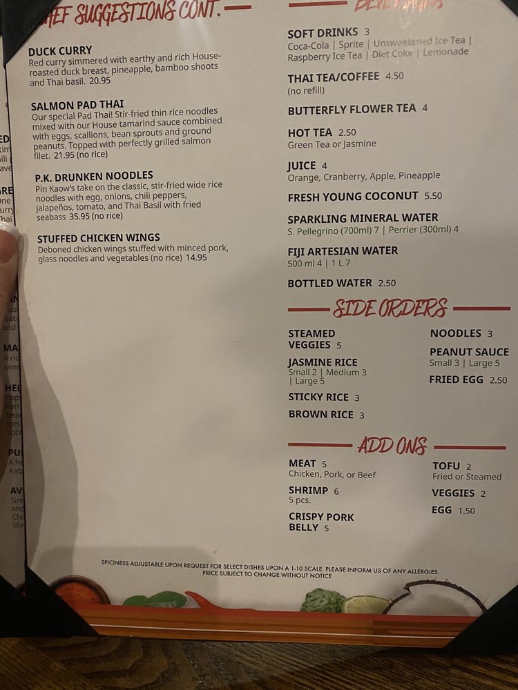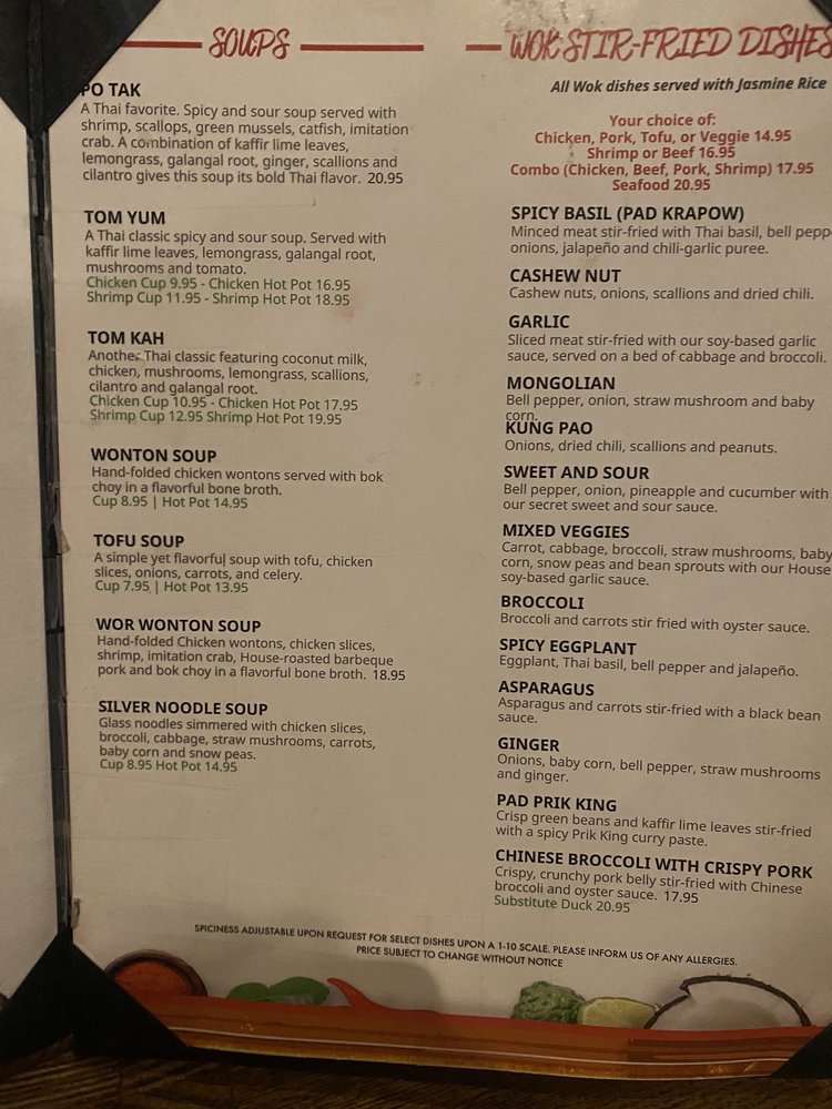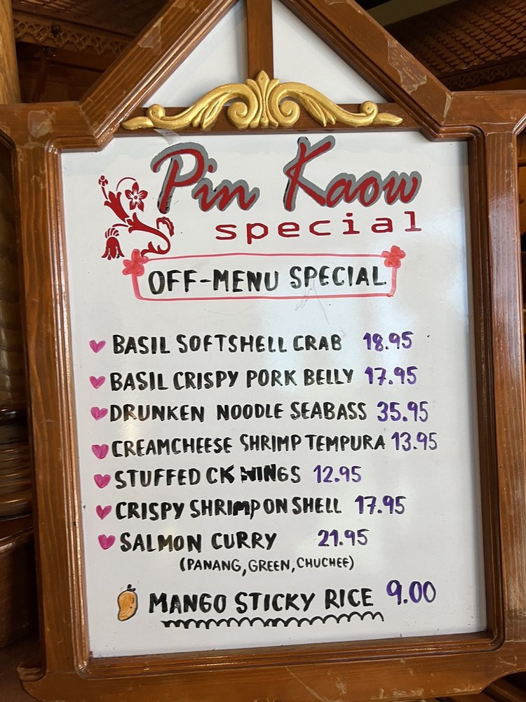 Pin Kaow Thai Restaurant in Henderson, NV offers a range of authentic Thai dishes and a welcoming ambiance. With options for vegans and vegetarians, the menu includes favorites like panang curry, Won Ton soup, yellow curry, pad Thai, and more. Customers praise the attentive service, delicious food, and cozy atmosphere. The mango salad, crab fried rice, and Pink Noodle Soup are highly recommended. The restaurant provides a calming environment for good conversations and enjoyable dining experiences. The full bar, happy hour specials, and outdoor seating make it a versatile spot for various occasions. Don't miss the chance to explore the flavors of Thailand at Pin Kaow Thai Restaurant.